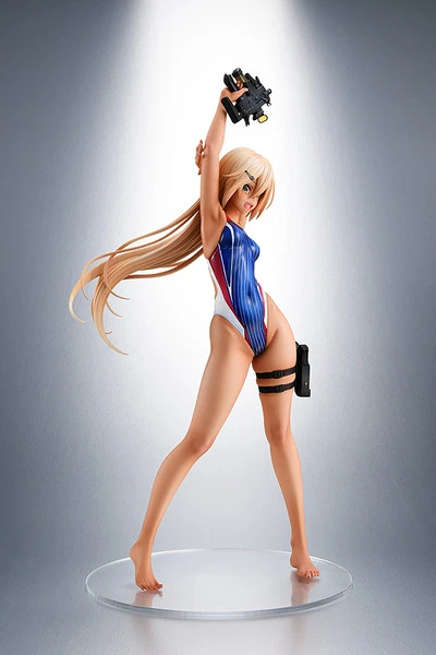 She’s armed and dangerous! Holding an assault rifle in her hand while a sheathed pistol is strapped securely to her left thigh. Her long blonde hair flows effortlessly with her stretch, giving motion to this one of a kind figure. Collect Kouhai-chan before she’s gone for good!