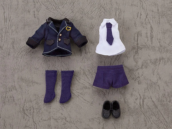 Set Contents: Figure, Jacket, Top, Shorts, Knee-High Socks, Loafers (with Magnets in Soles), Interchangeable Hand Parts (Closed Hands (Left/Right) / Pointing Hands (Left/Right)), Magnetic Base (For Magnetic Soled Shoes), and Articulated Stand.