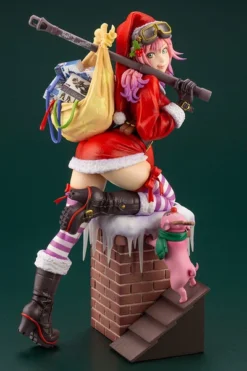 The statue is full of small details that can be enjoyed from every angle, from her cute Santa suit and loveable pug Mog, to the bag tied to a gun barrel filled with various types of presents!
