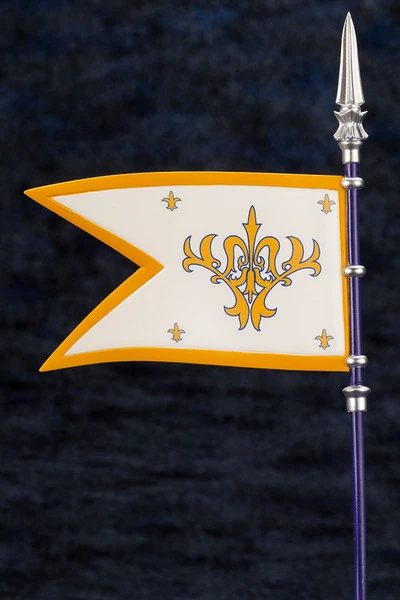 Jeanne’s silver armor is faithfully recreated with intricate detail. The figure comes with two versions of Jeanne’s iconic flag, one where the flag is rolled up, and one where it is open. The figure also comes with two interchangeable face parts (default and shouting) to recreate a variety of memorable scenes and poses from the game.