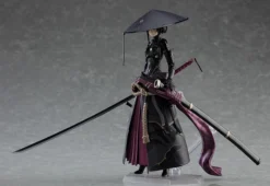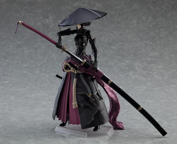 Her odachi sword that surpasses her own height in length and her tanto sword are included. She can be displayed drawing her odachi sword, and parts to display her tanto sheathed are included as well. She can be displayed wearing her roningasa hat with the use of an interchangeable head part.