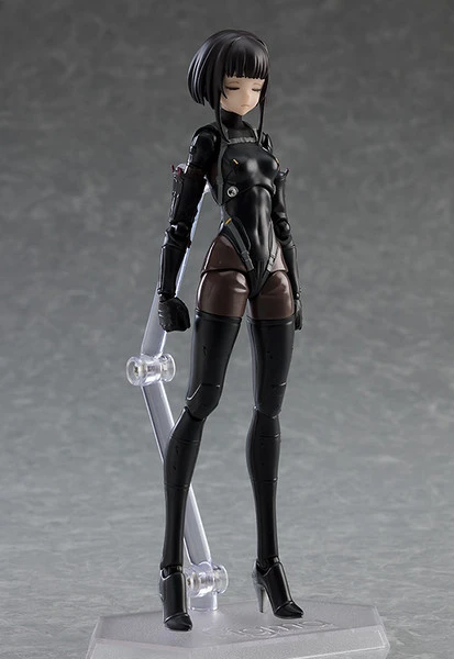 An interchangeable abdomen part and interchangeable thigh parts are included to display her lightly equipped. An articulated figma stand is included to display the figma in a variety of poses.