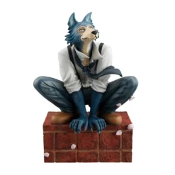 Legoshi, the lupine protagonist of Beastars, is getting away from it all in this figure. He’s crouched atop a brick building, slightly wrinkling his school uniform. His blue-gray fur perfectly matches the pinstripes of his pants. Legoshi’s loosely slung tie blows in the wind, along with a few cherry blossom petals. The look on his face show that Legoshi’s found his happy place, if only for just a moment…