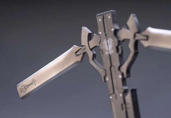 Both the soft curves of her clothes and body and the sharp edges of her cold steel weapon have been created in stunning detail. The various emblems and barcode on her outfit have been carefully printed as well.