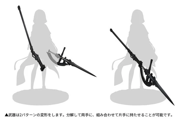 The production of the figure has been entirely supervised by neco to ensure that every small detail has been faithfully preserved. Her weapon can also be displayed in either spear or sword & gun forms.