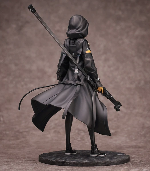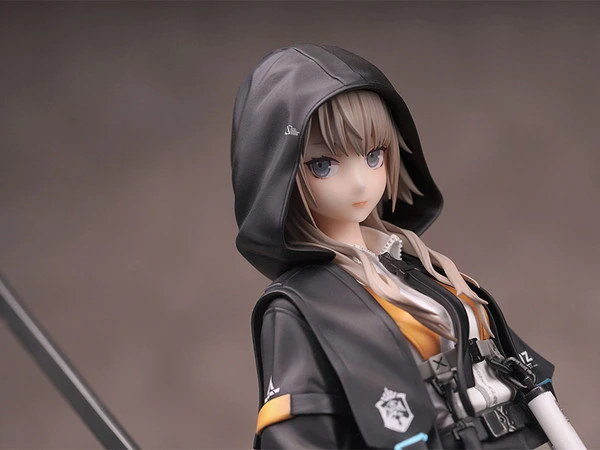 Her expression underneath her hood is gentle, yet strong. The figure features various heavy-looking equipment along with her jacket that appears to flutter in the wind.