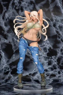 Her blonde hair floats behind her sculpted tan body. Her crop top slightly revealing her chest and she puts her arms behind her head. She stands confidently as the rugged and ripped jeans she is wearing begin to slide down her thighs. Get this figure today and she will stomp out your friends’ collections!