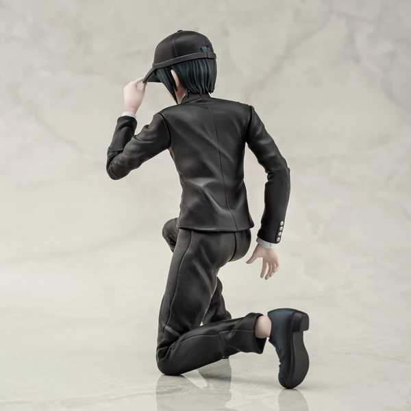 This figure portrays the Danganronpa V3 student preparing to take on another case. His black uniform, with its silver buttons and trim, is crisp and clean, and coordinates well with his matching cap.