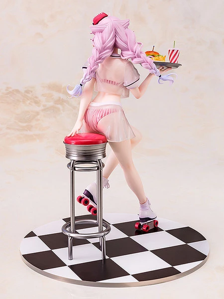 Featuring a cute and retro American diner theme, Marinoa is wearing a translucent top and skirt. Marinoa’s long legs and fine details like her earrings, belly button and elf ears have all been carefully captured in figure form.